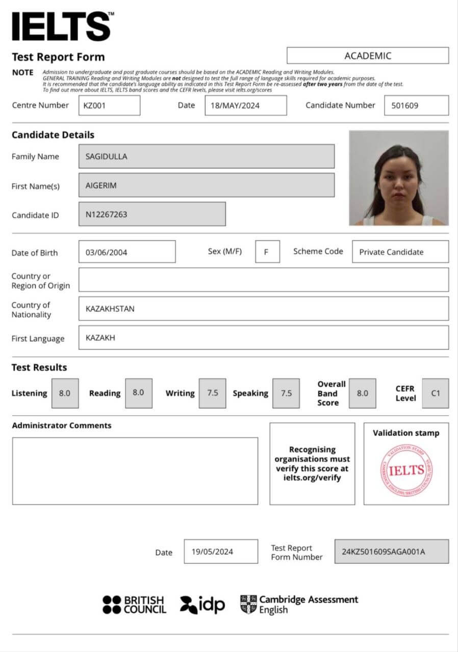Наталья, здравствуйте, пришли результаты. Overall 8, но жалко за Speaking 7, он прошёл не как ожидалось, за Reading 8, тоже жалко там ошибки из за потери...